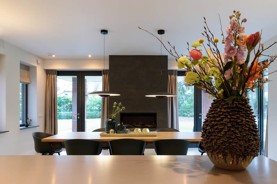 Deze villa is geïnspireerd op de architectuur van één van de meest invloedrijke architecten aller tijden: Frank Lloyd Wright. Hij ontwikkelde zijn eigen "prairie huis stijl", geïnspireerd door het Amerikaanse platteland en wordt gekenmerkt door horizontaliteit in de opbouw, geometrische figuratie en ruimtelijke versmelting van binnen en buiten. De Frank Lloyd Wright stijl onderscheidt zich door de specifieke vormgeving en de samengestelde flauwhellende kappen, met de typische grote overstekken.