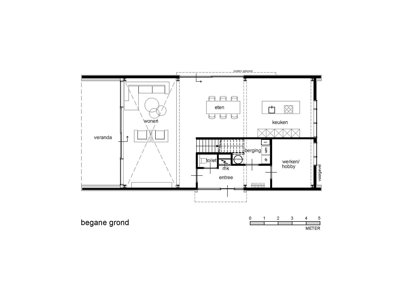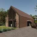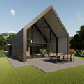 Deze schuurwoning heeft als basis één volume, zonder uitbouwen, met een kap. De constructie is van stalen spanten of een staal-skelet-bouwsysteem met wanden en daken van sandwichpanelen. Het bouwconcept heeft een vrije overspanning, zodat de plattegronden vrij indeelbaar zijn. Vele indelingen zijn mogelijk, zoals een vide/loft en eventueel een levensloopbestendige indeling met slaapkamer op de begane grond. Samen met u als opdrachtgever worden de plannen op maat uitgewerkt. Bij een staal-skelet-bouw-woning geldt in principe ‘ruwbouw is afbouw’, maar ook een luxer afwerkingsniveau aan de binnenzijde is een optie.