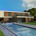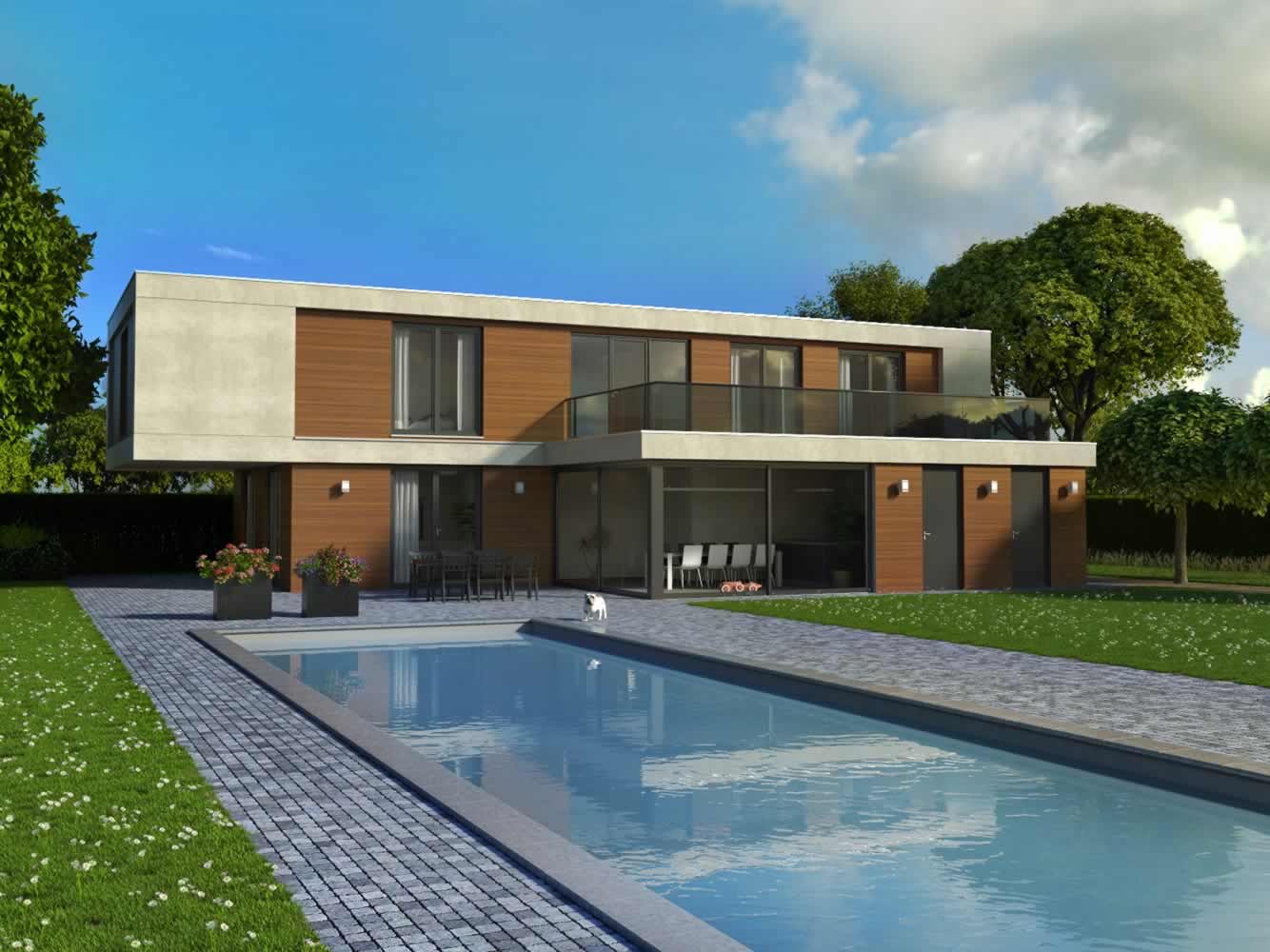 Door de rechte lijnen van de villa kunnen de woonoppervlaktes zowel binnen als buiten optimaal worden benut. De moderne architectuur wordt doorgezet in de tuin met een ingetogen en parkachtige sfeerbeleving.